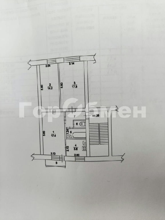 Комнаты: 17.8 17.4 14.2 м2